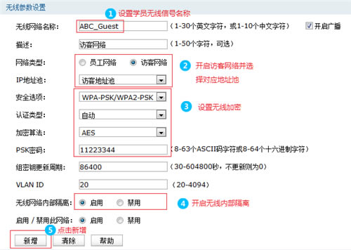 注意:如果访客地址段地址不足,可以通过缩短其他地址段。