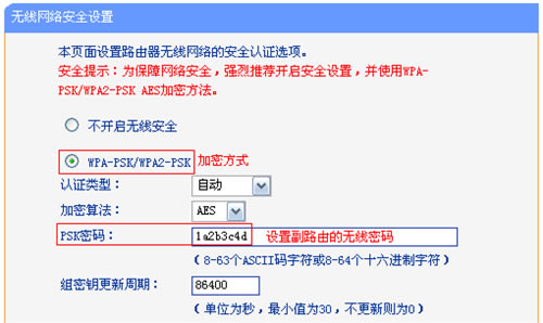点击 无线设置 >> 无线安全设置,选择与主路由器相同的加密方式,在 PSK密码 中设置与主路由器相同的无线密码,点击 保存。