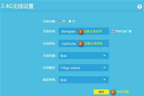 设置2.4G网络的名称和密码: