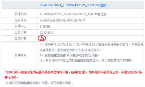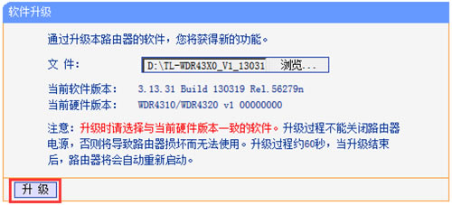 说明:当前硬件版本会显示WDR4310/WDR4320是由于这两个设备当前使用的是同一个升级软件,实际环境中,您使用的产品型号是TL-WDR4320。