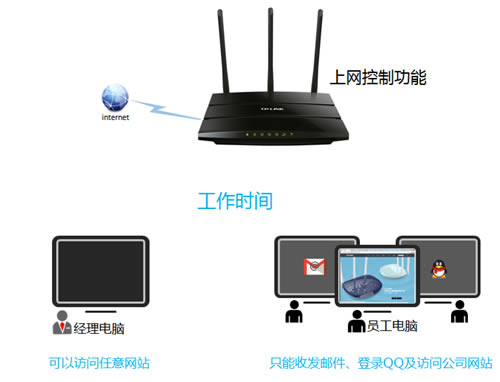 依次添加员工在工作时间收发邮件、登录QQ和非工作时间的访问规则,设置完成后,总规则如下: