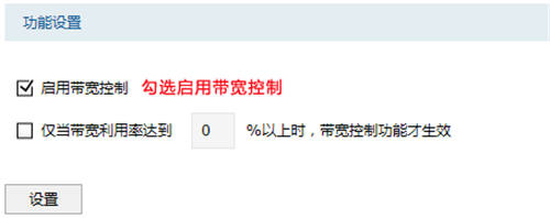 注意:勾选“仅当带宽利用率达到%以上时,带宽控制功能才生效”,如:10M带宽,设置带宽利用率为80%,则表示触发带宽控制的条件是内网使用到总带宽8M时,带宽控制规则才会生效。