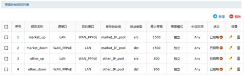 同样的方法,添加其他部门的带宽控制规则。添加完成后的规则列表如下: