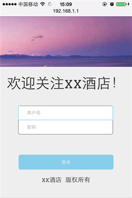 无线终端(手机)连接无线网络后,跳转到认证登录页面(部分Android手机需要打开浏览器),如下: