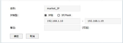 点击“对象管理>地址管理>地址”,点击+新增,添加市场部的IP地址段,如下图: