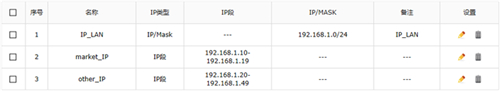 同样的方法,添加其它部门的IP地址段,添加后列表如下: