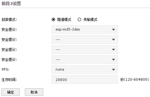 总部与分部需要成功搭建隧道,必须要配置一致的安全认证协议和参数。由于TL-ER7520G预置相关安全参数,则只需要点击高级设置,查看默认的安全提议和参数,后续方便在对端路由器上进行配置。点击高级设置并记录对应参数,如下: