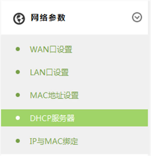 2、点击 网络参数 >> DHCP服务器,如下图: