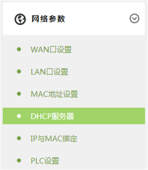 2、点击 网络参数 >> DHCP服务器,如下图: