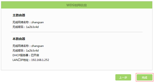 至此无线WDS桥接设置完成,副路由器下的无线终端连接到zhangsan,即可正常访问网络。终端移动过程中,可以实现主、副路由器间的自动漫游。