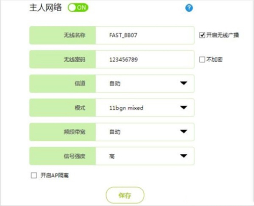 2、设置主人网络wifi密码。点击“高级设置”——>“无线设置”——>“主人网络”——>修改“无线密码”——>点击“保存”