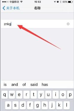 进入“名称”界面,将iPhone6修改成znkg,即可设置成功。