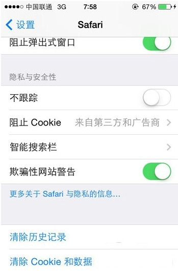 1、清空Safari缓存。用Safari浏览网页时间久了会产生缓存数据,清空Safari缓存来保持它的运行流畅。需要进入【设置】-【Safari】,然后点击“清除历史记录”和“清除cookies和数据”。