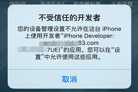 8、点击游戏,会跳出 “不受信任的开发者” 提示,只需在设置-通用-描述文件与设备管理,找到对应的证书,点击信任即可。