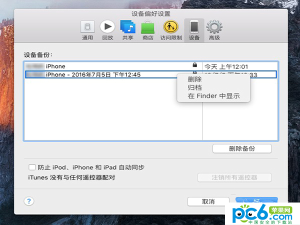 4. 备份完成之后,打开「偏好设置 - 设备」,可以看到你刚才的备份记录,右键点击后选择「归档」,以确保这个备份不会被后续的新备份所覆盖。